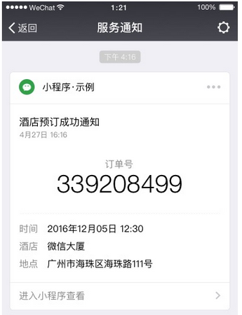 4、小程序路径是指,用户点击通知信息后跳转的路径。