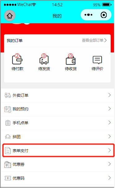 小程序表单支付功能